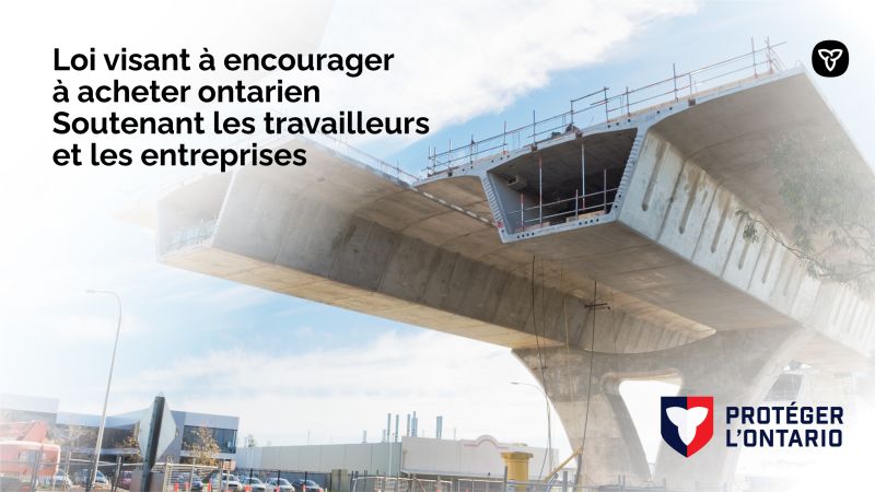 Ces mesures respecteront l’engagement du gouvernement à protéger l’Ontario en faisant en sorte que, face à aux droits de douane américains et à l’incertitude économique, l’argent des contribuables ontariens serve à soutenir les travailleuses et travailleurs de l’Ontario et à utiliser des produits ontariens comme l’acier, le bois d’œuvre, les automobiles, les camions et plus encore.